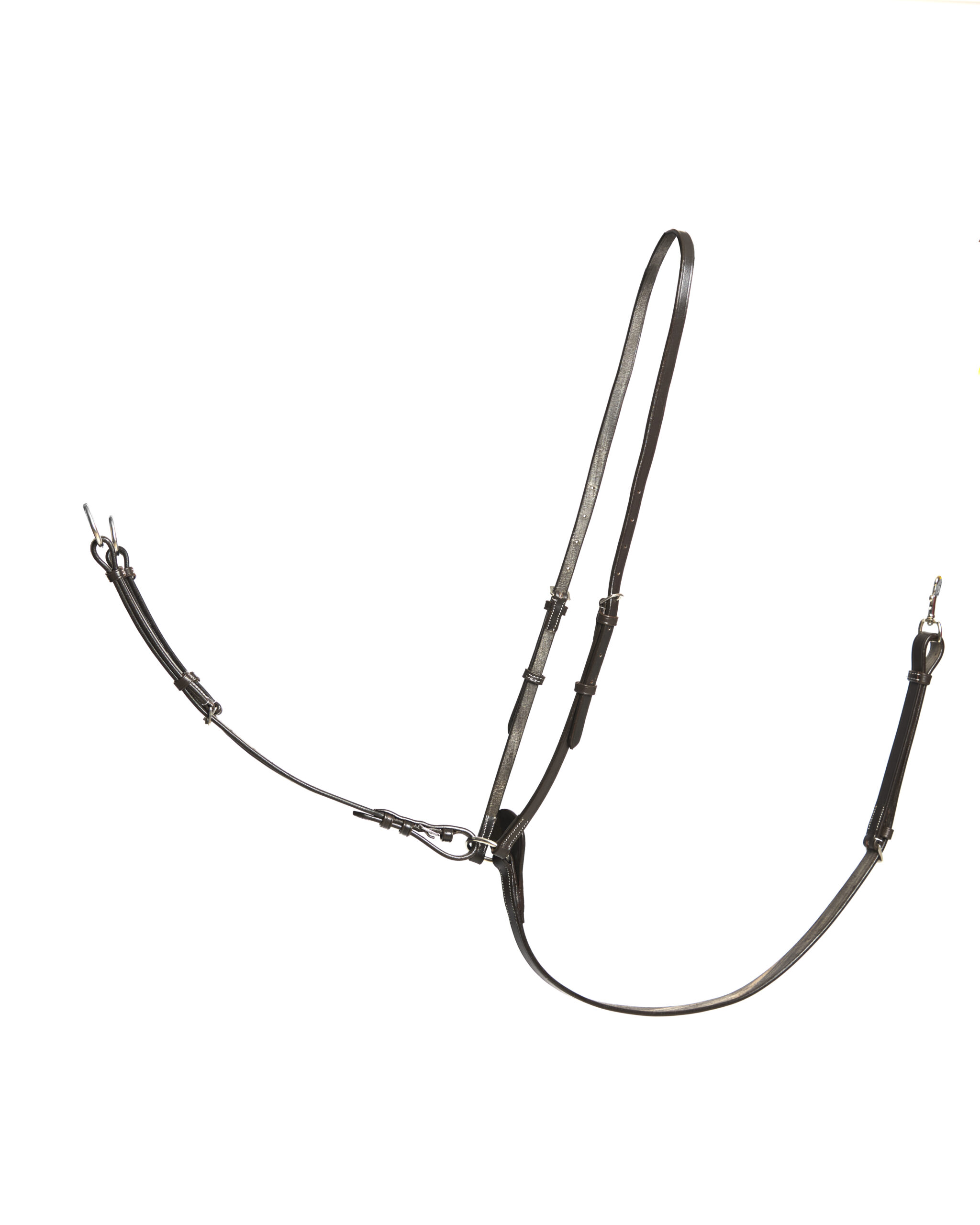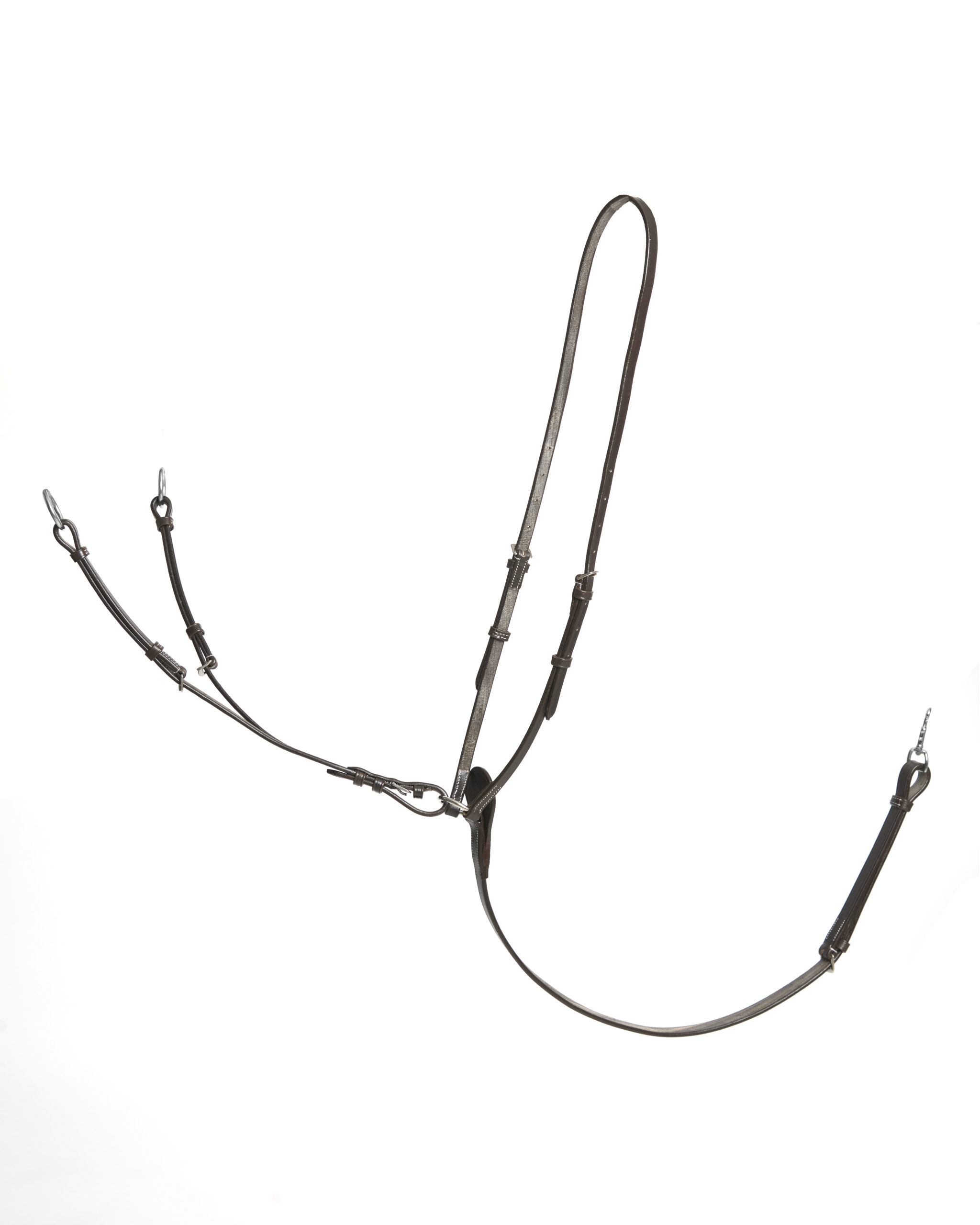 JLN Running Martingale limits the horses upward head movements by acting on the mouth through the reins. It prevents the horse from throwing its head up and ensure that the rider does not get hit in the face by the horse’s pole or upper neck.