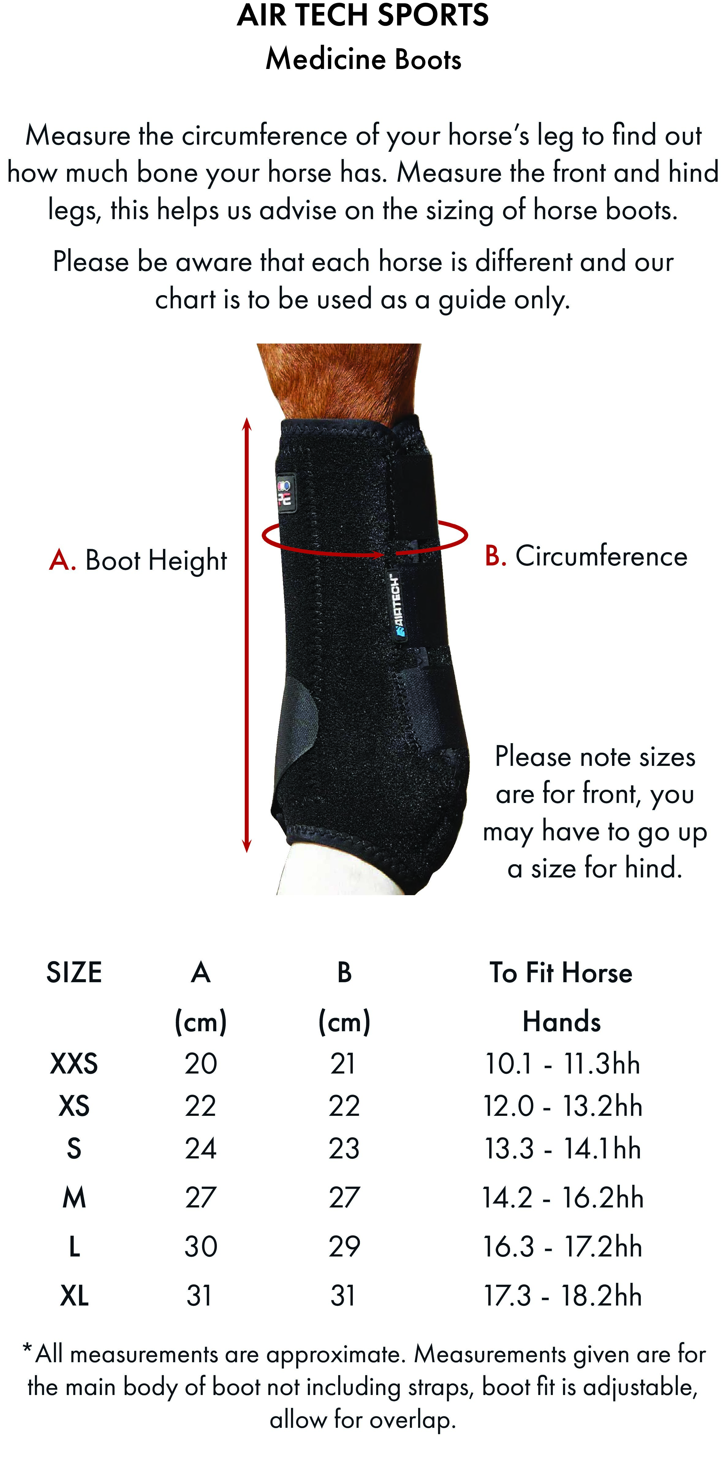 Your Air-Tech Sports Medicine Boots have been carefully hand packaged in a complimentary, reusable zip-fastened storage bag to keep your tack room tidy when not in use and for easy carrying