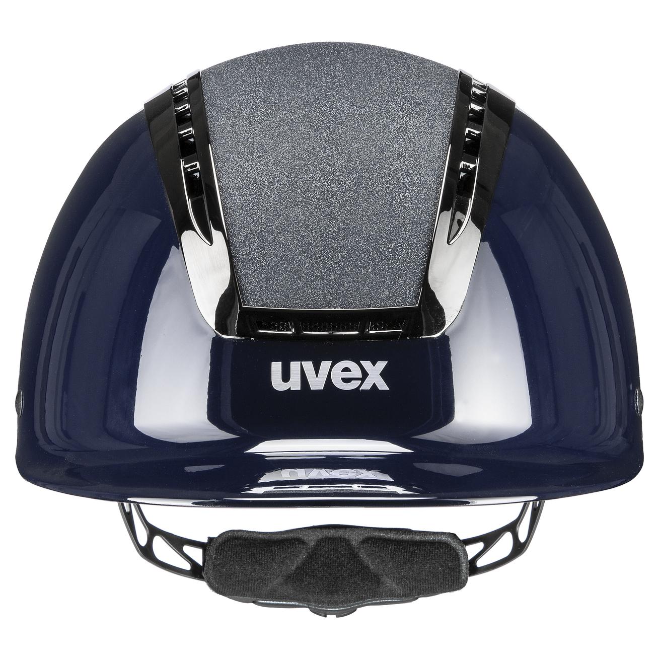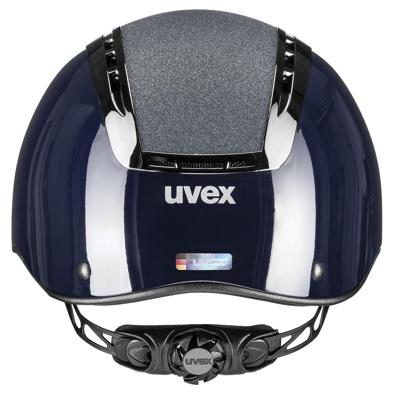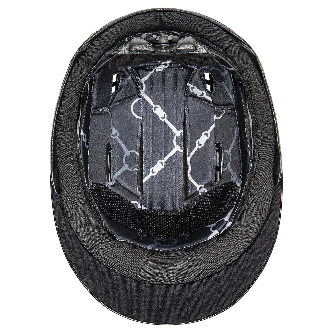 The popular dressage helmet uvex suxxeed blaze impresses with a new design. Its shell in piano lacquer finish with shimmering glitter insert and metal frame in black chrome bid to out-sparkle each other. A true showpiece!